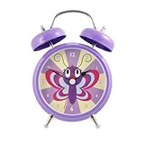 Rise & shine to unique alarm clock animal sounds. Our Butterfly alarm says, "Smooooch" Kiss sound! Purple clock frame. 3 AA Batteries included.Packaged in clear gift box.Approx. 4" diameter clock face, 7" tall